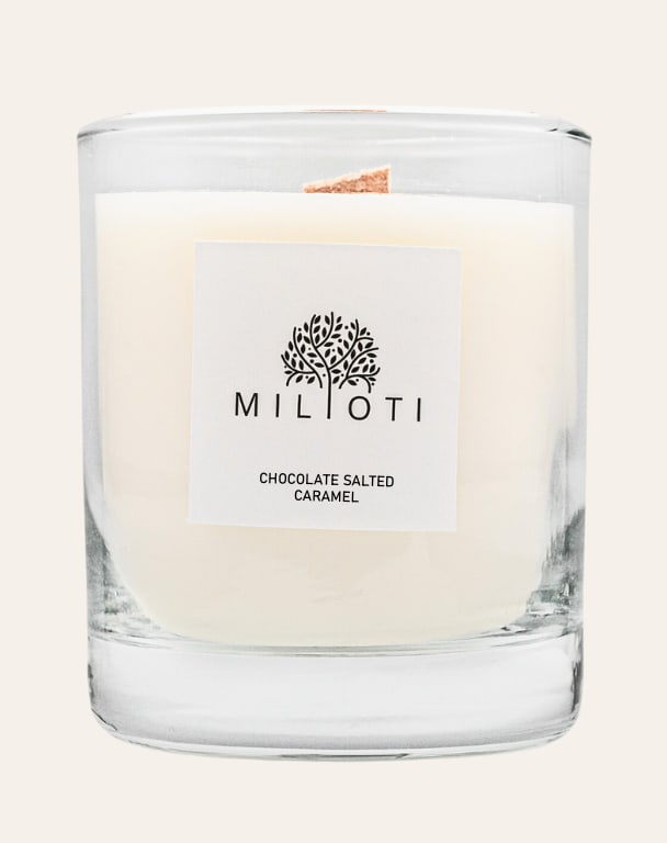 100% φυτικό κερί σόγιας με λαχταριστό άρωμα Σοκολάτας και Αλατισμένη Καραμέλα.