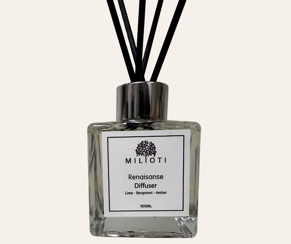 Απολαύστε μια αρωματική εμπειρία φρεσκάδας και κομψότητας με το Milioti Renaissance Diffuser, με νότες αρώματος από Λάιμ, Περγαμόντο, Πράσινα Φύλλα, Δενδρολίβανο, Μόσχος, Κεχριμπάρι και Ξύλα.